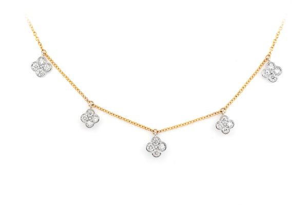 Five Station Milgrain Clover Diamond Dangle Necklace 14k Solid Gold 0.35ctw