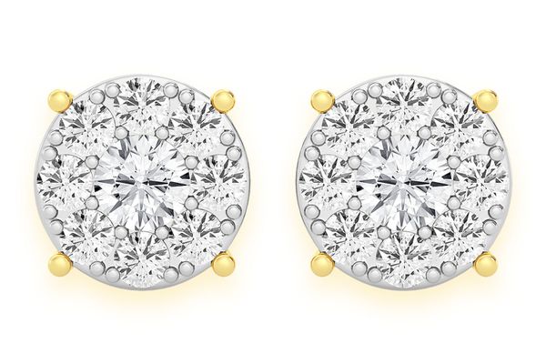 1.50ctw Mosaic Stud Diamond Earrings 14k Solid Gold