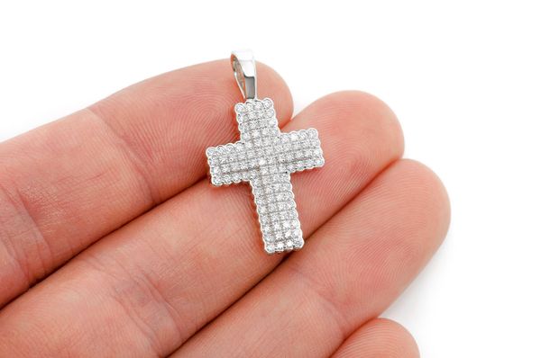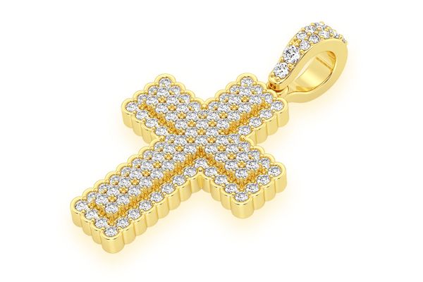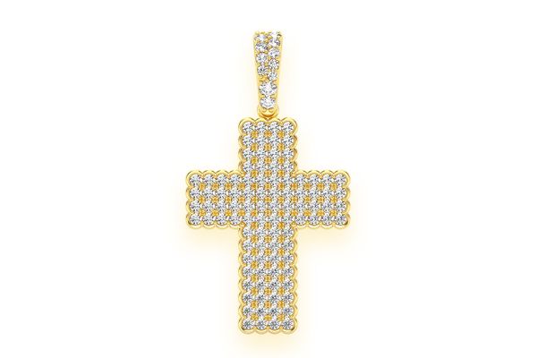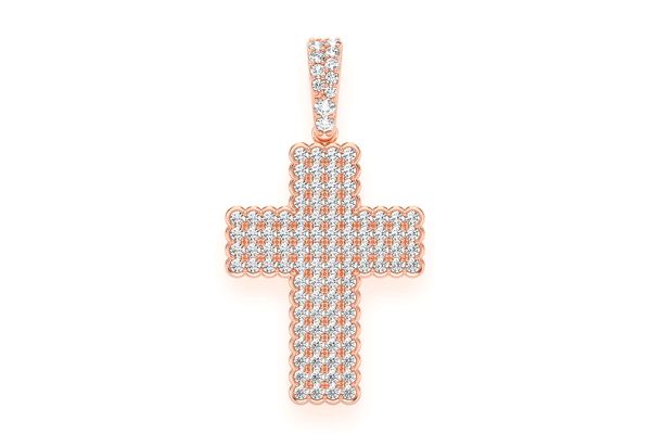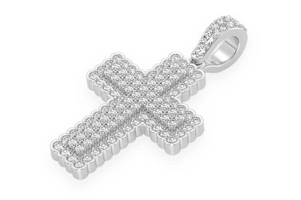 Bezel Border Cross Diamond Pendant 14k Solid Gold 0.90ctw