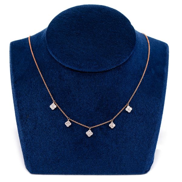 Five Station Milgrain Clover Diamond Dangle Necklace 14k Solid Gold 0.35ctw