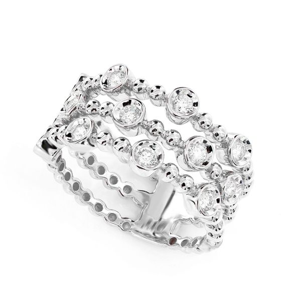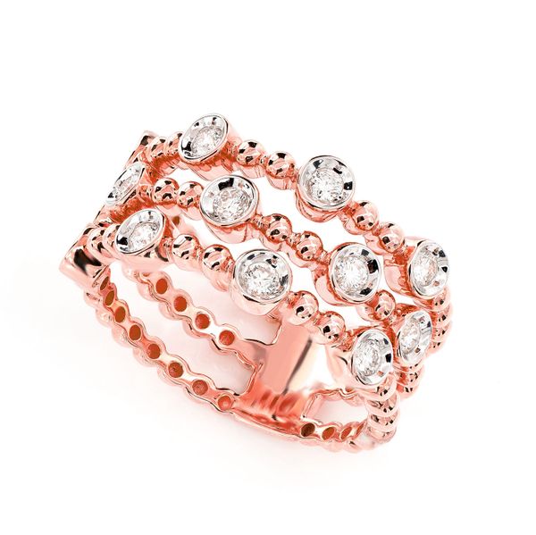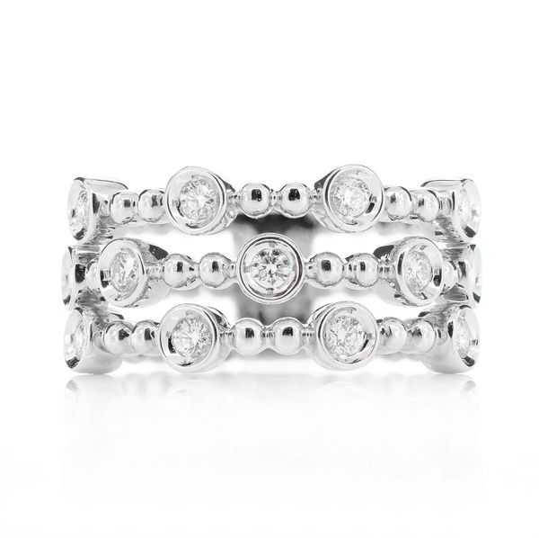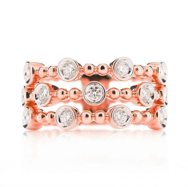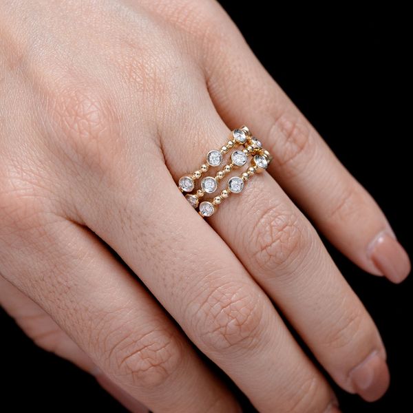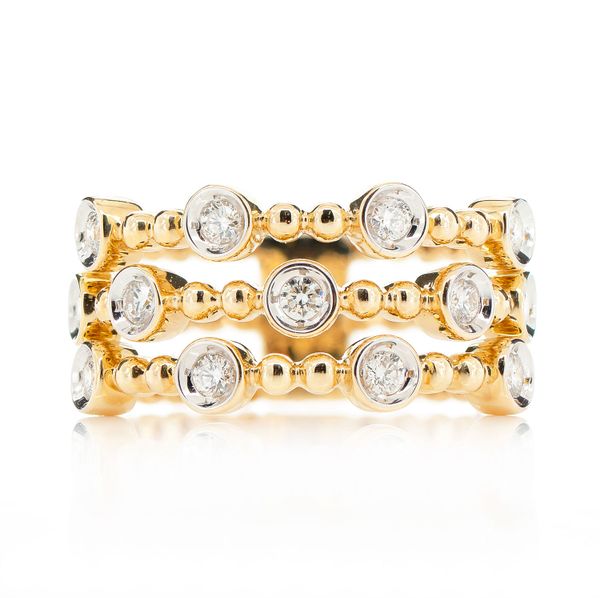 Four Row Scattered Beaded Bezel Diamond Band Ring 14k Solid Gold 0.35ctw