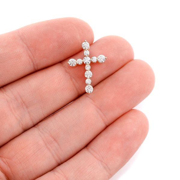 Shared Prong Diamond Hidden Bail Cross Pendant 14k Solid Gold 0.85ctw