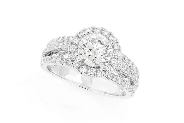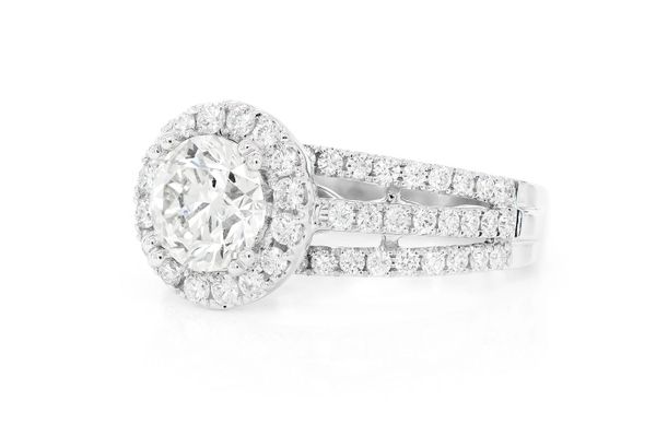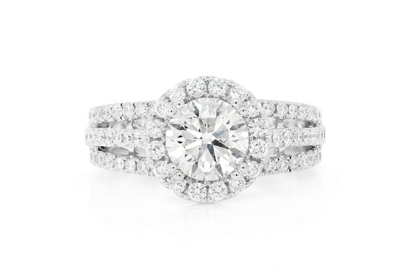 1.50ct Round Solitaire - Three Row Cathedral Halo - Diamond Engagement Ring - All Natural